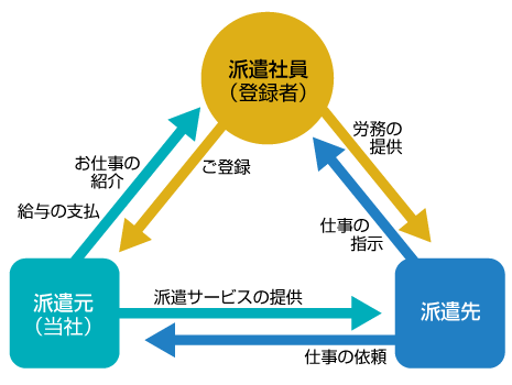 一般的な働き方との主な違いは、雇用されている会社と勤務先の会社が異なるという点です。